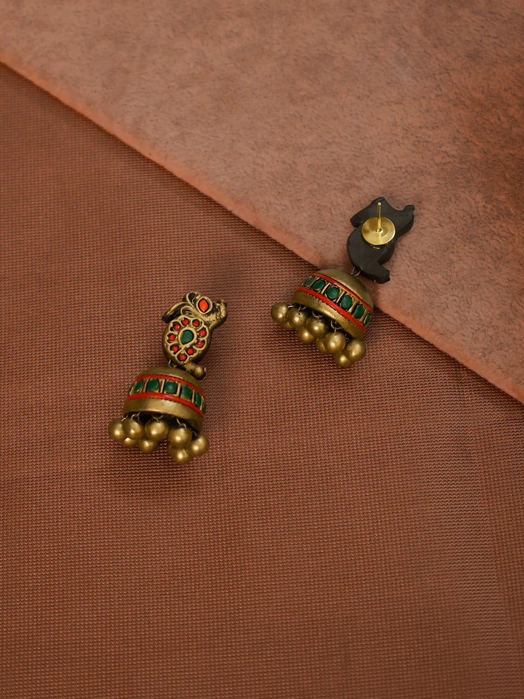 Anka Ruchi — Handmade Antique Gold Geometric Shape Terracotta Jhumka