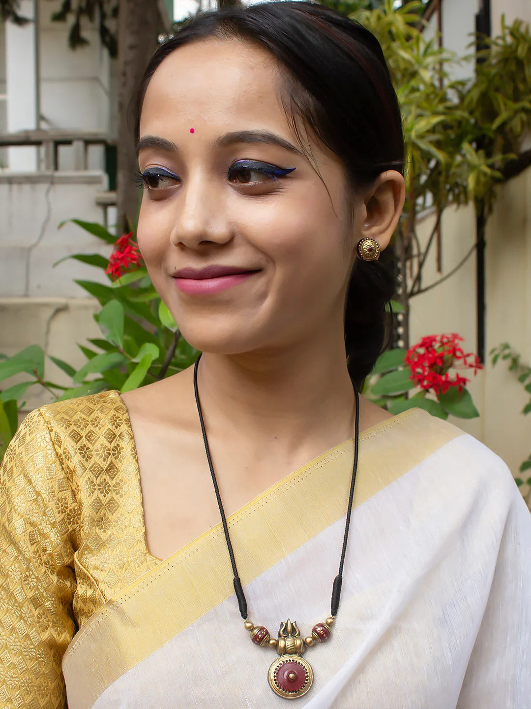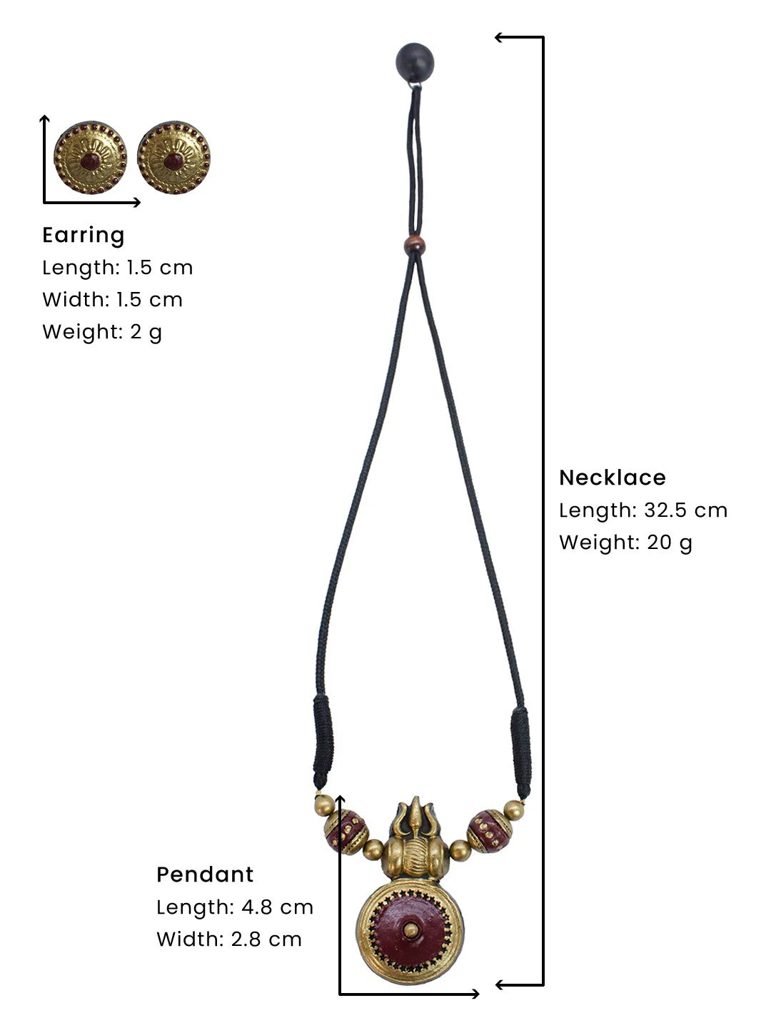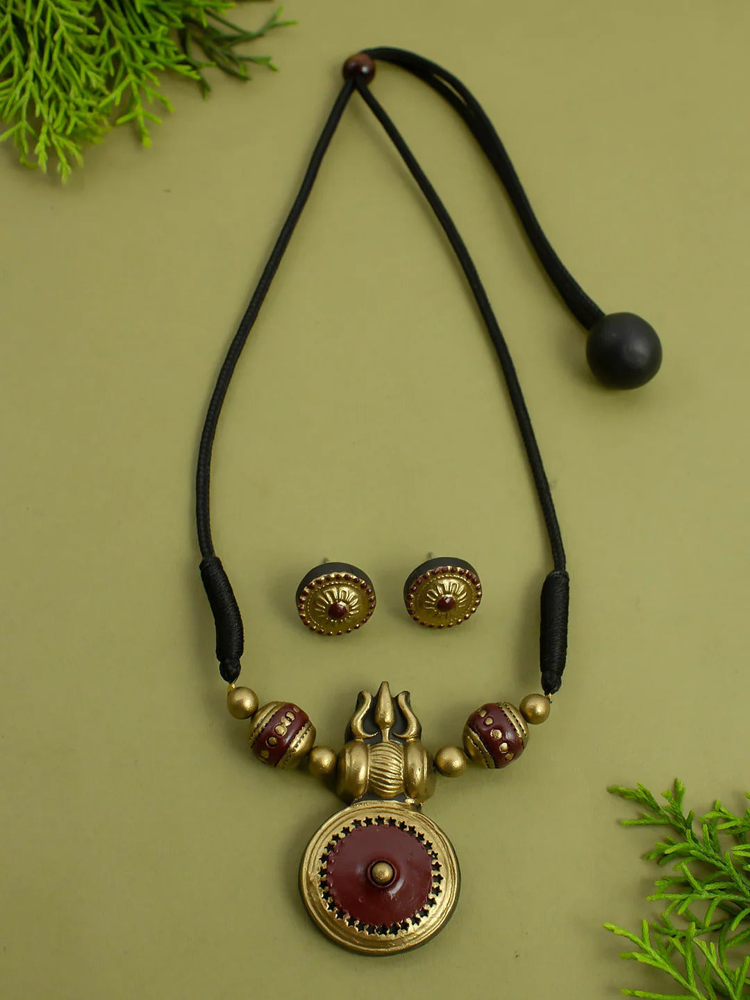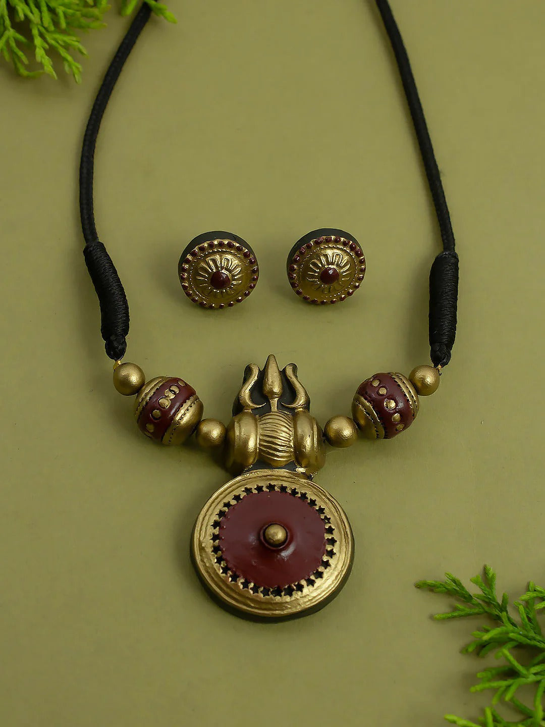 Trinetra — Trishul Design Antique Gold Brown Minimalistic Handmade Terracotta Necklace Set